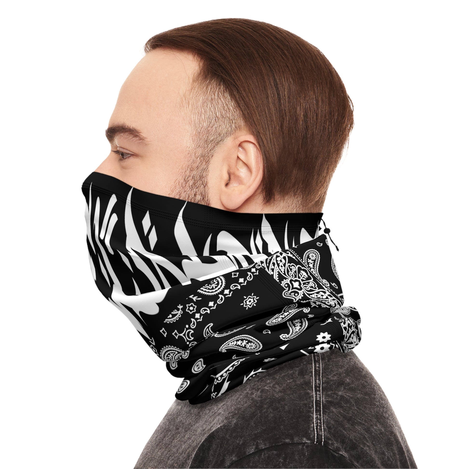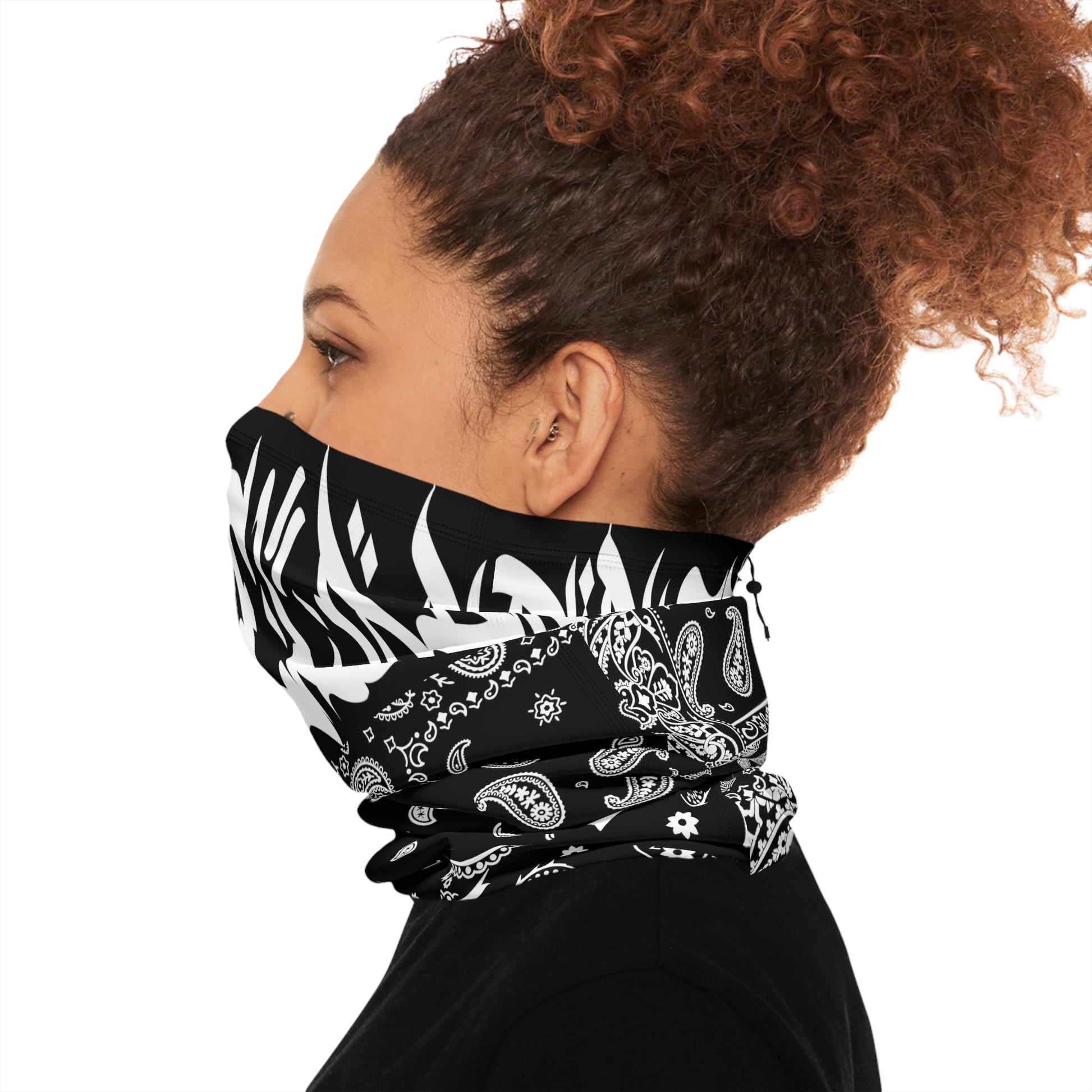 Designed to keep your face and neck warm despite the forecast, these winter neck gaiters are made with a heavyweight, fleece-like fabric (90% Polyester-10% Spandex). Use the drawstring to find the perfect fit, and enjoy skiing, snowboarding, snowshoeing, or any winter activity with custom style and ample warmth.