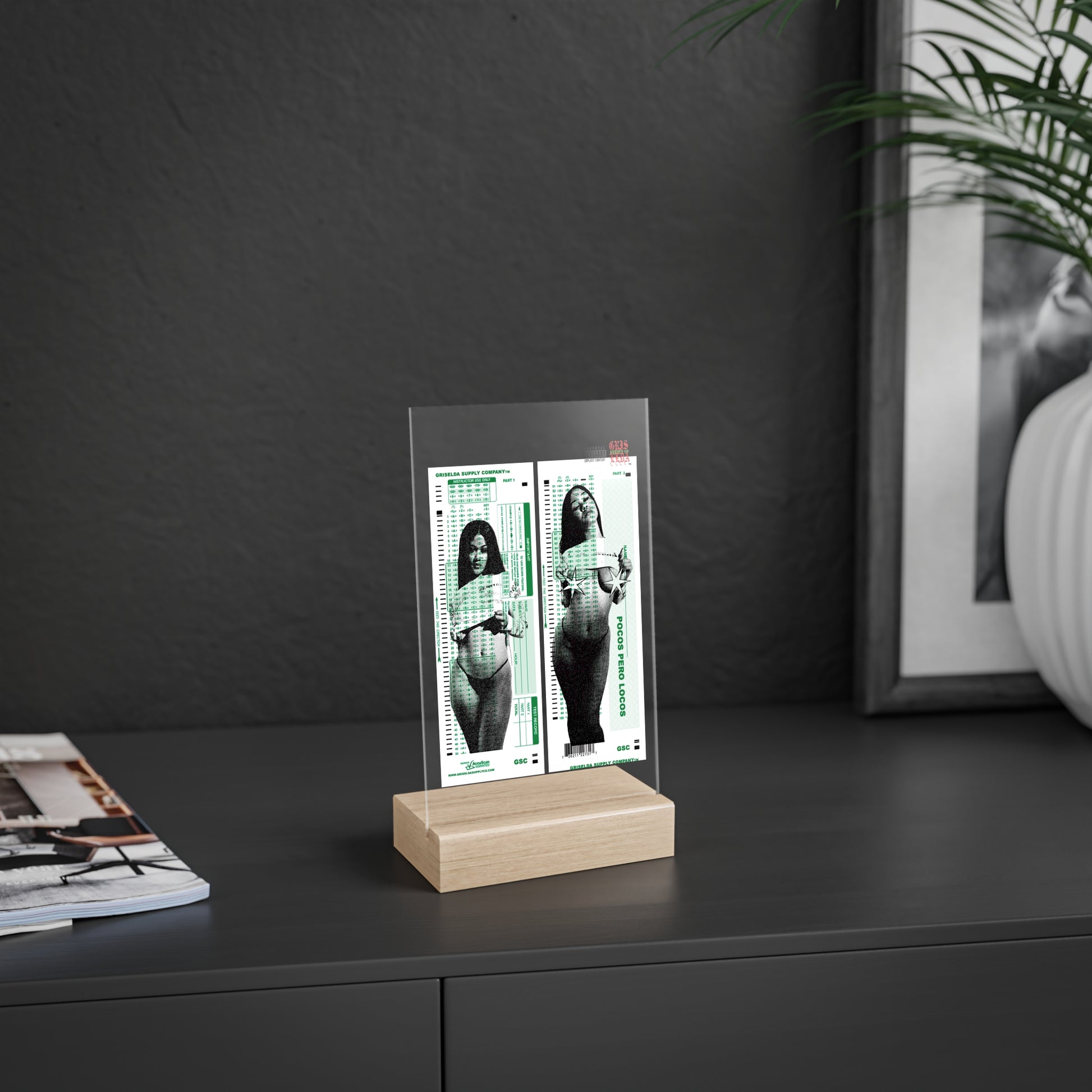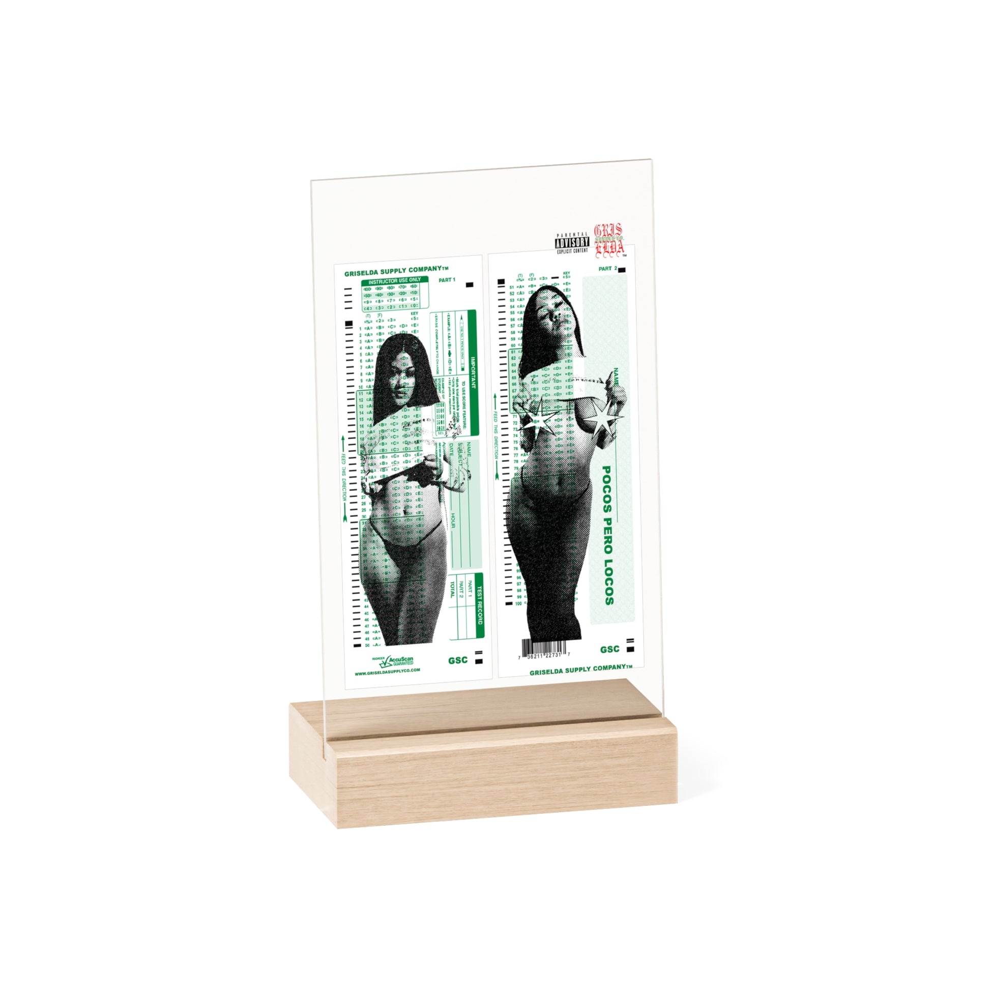 Ivory X GSC Scantron Acrylic Sign with Wooden Stand