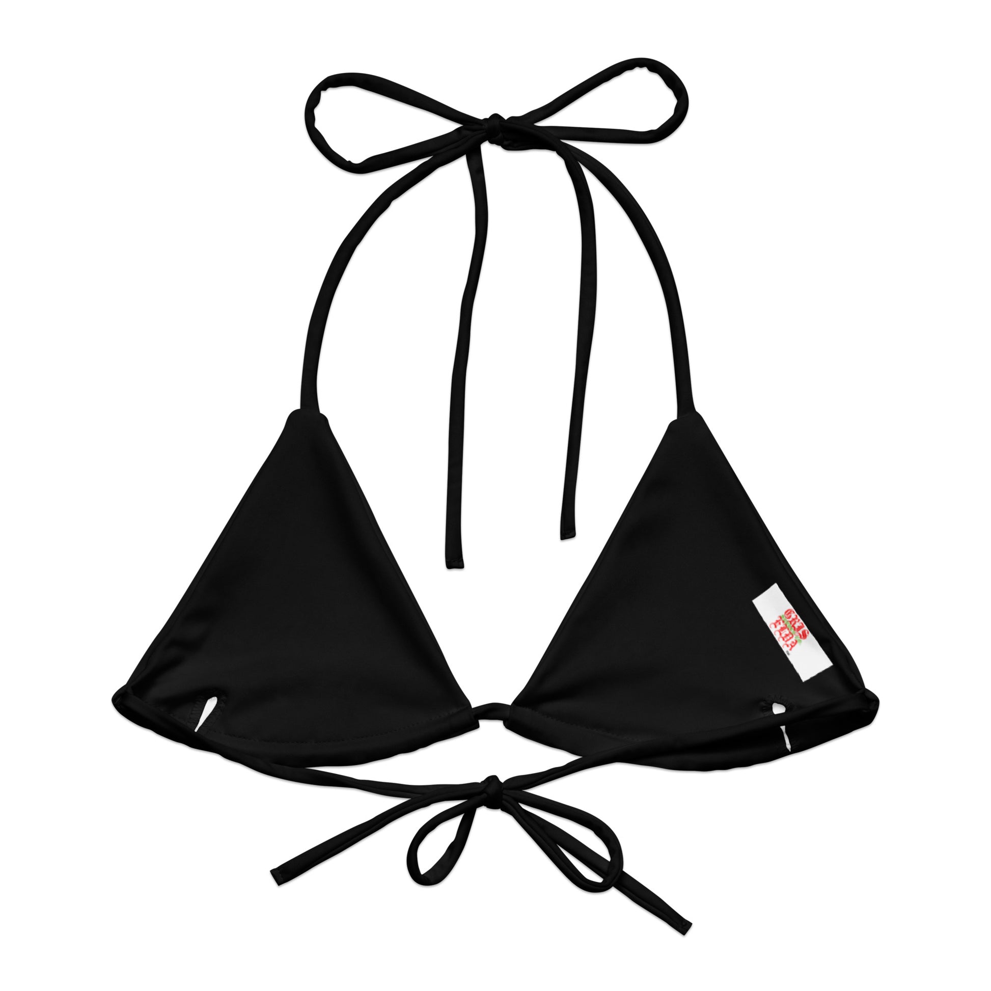 Disclaimer: To make your All-Over Print Recycled String Bikini Top last longer, thoroughly rinse it off after each use and get rid of any chlorine/salt residue.